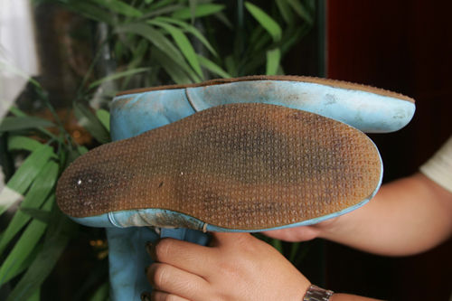 靴底上可以看見很明顯的磨平痕跡