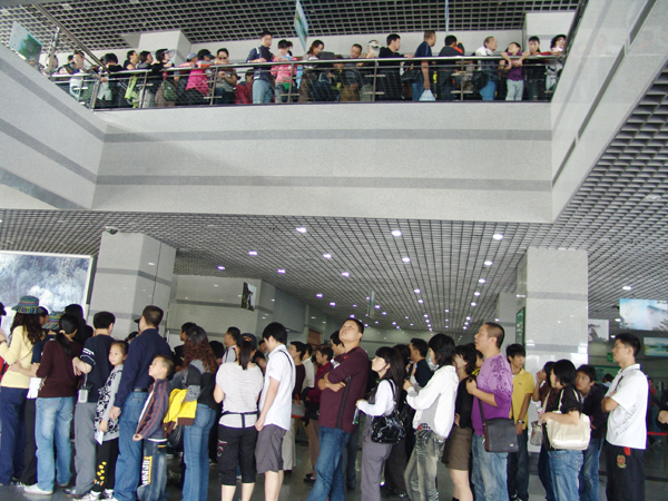 | “十一”黃金周,天門山景區(qū)游客驟增。僅10月1號到10月2號,兩天的進(jìn)山人數(shù)達(dá)到11000人左右,形成了空中花園萬人賞景的壯觀景象。 在索道下站,天門山景區(qū)特別組織工作人員現(xiàn)場協(xié)調(diào)游客排隊(duì)等候,并開放了中央空調(diào)給游人一個(gè)舒適的候車環(huán)境,現(xiàn)場秩序一片井然。