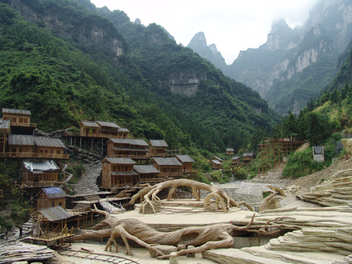 實景演出舞臺搭建在天門山進山山門處