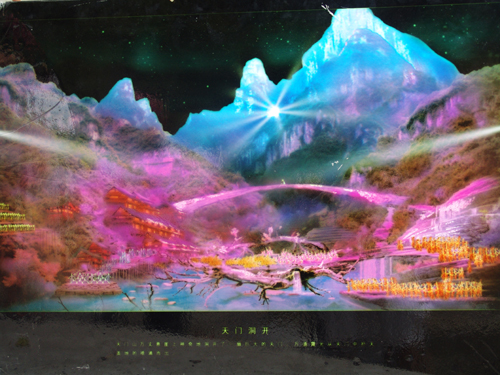 張家界天門山大型山水實景音樂劇《新·劉海砍樵》是世界上第一臺以高山奇峰為舞臺背景,以山澗峽谷為表演舞臺,有完整故事情節(jié)的音樂歌舞劇。舞臺選址在天門山風景區(qū)山門口內(nèi)至天門山頂?shù)恼麠l峽谷,主舞臺以10000平米的玻璃鋼打造,是目前世界最大的全景玻璃鋼舞臺,背景融合了壯美瑰麗的奇峰險壑、峽谷里的飛瀑流泉、空中的霧嵐飛煙、山上的林木花草以及壯觀的天門洞,整體形成了一個縱深10余公里,橫寬高差逾千米的超級大舞臺。同時,在峽谷山澗之間還將搭建一個跨度60米,高度32米的伸縮飛橋,這是目前世界范圍的演出項目中絕無僅有的大型舞臺機械裝置。這些獨有的裝置將成為該劇實現(xiàn)特殊藝術(shù)表現(xiàn)力和巨大視覺沖擊力的獨特資源。
