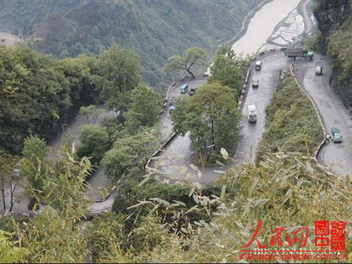 由于這是湖南西部連接重慶的國道,盡管道路是盤旋在懸崖絕壁而上,但車流量很大,路面損壞、堵車經(jīng)常發(fā)生。大型車輛,司機沒膽量和沒過硬的技術(shù)是不敢走這一路段的。