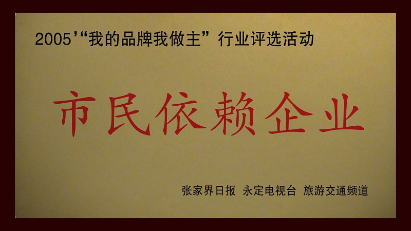 5、被張家界日報、永定電視臺、旅游交通頻道共同評為2005"我的品牌我做主"行業(yè)評選活動《市民依賴企業(yè)》