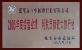6、2006年3月被張家界市旅游局評為《2005年度經(jīng)營業(yè)績,利稅貢獻較大旅行社》
