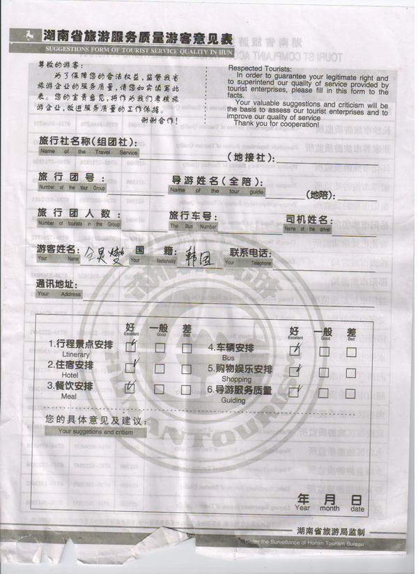韓國(guó)全先生一行4人旅游質(zhì)量回饋