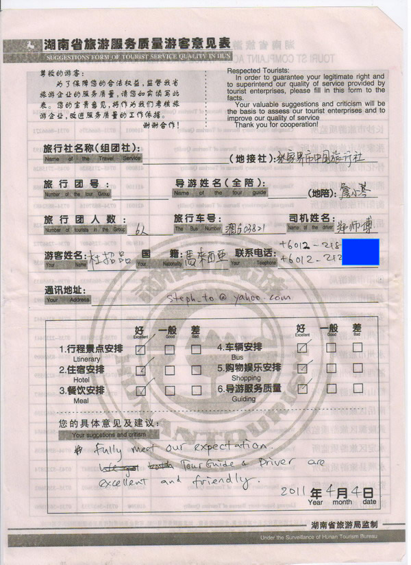 馬來(lái)西亞杜先生一行6人旅游質(zhì)量回饋