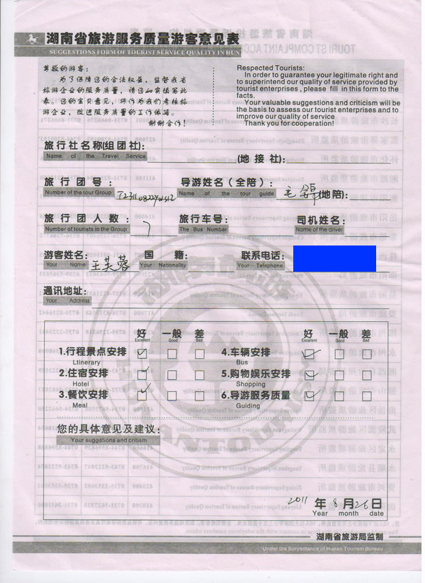 天津王小姐一行7人旅游質(zhì)量回饋