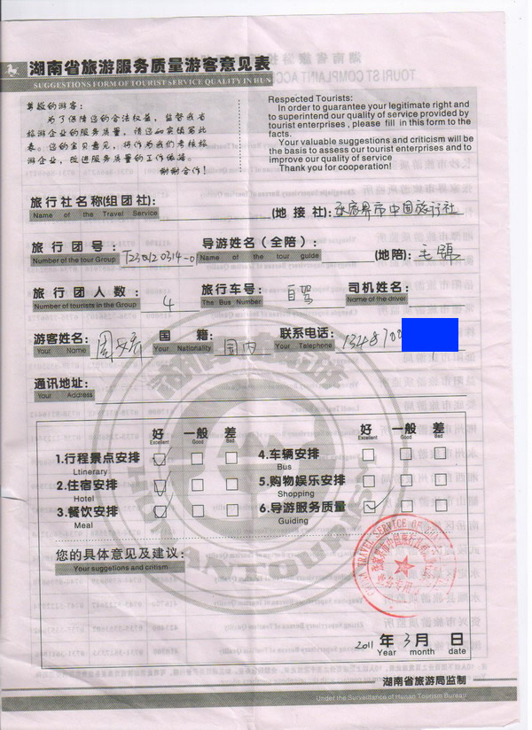 湖北周小姐一行4人旅游質(zhì)量回饋