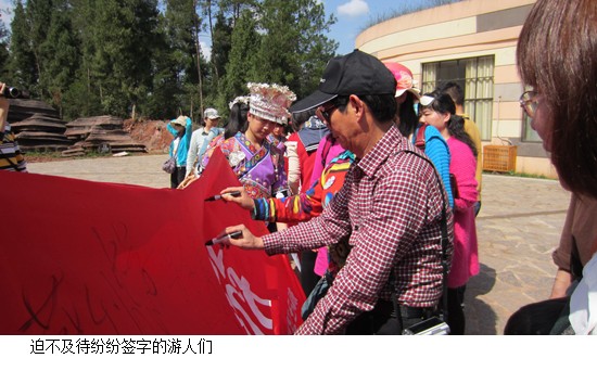 在景區(qū)阿妹的熱情款待下,游人們爭(zhēng)先恐后的為這次非凡之旅簽上了自己的名字,并與漂亮的阿妹舉行了簡(jiǎn)單而又溫馨的入園儀式。在景區(qū)講解員阿妹的帶領(lǐng)下,游人們開(kāi)啟了穿越湘西之紅石林的快樂(lè)征途。