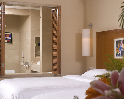 級全景房:面積42平米,典雅精致的浴室,設(shè)有浸浴和淋浴,浸臥在1.7米長的舒適浴缸中可愜意的觀看電視節(jié)目。