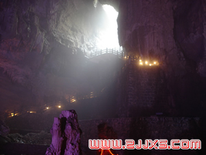 17個(gè)國(guó)家的20多名洞穴專家三次下九天洞考察,探出洞里面可供游覽的面積是250多萬(wàn)平方米,分為上、中、下三個(gè)主體層次(我們現(xiàn)在 處在第一層,第二、三層還在下面)最低層低于地面470米,洞內(nèi)有三條陰河,十二條瀑布,十五個(gè)潭,二口龍井,五座自生橋,六塊千丘田,三個(gè)天然湖,五個(gè)池,十余座洞中山,三十六個(gè)大廳等等。目前這個(gè)洞僅開(kāi)發(fā)了整個(gè)面積的十分之一,也就是說(shuō)我們今天的游覽面積是25萬(wàn)平方米左右,這其中,我們能看到四個(gè)天窗和六個(gè)大廳(其它五個(gè)天窗和大廳在尚未開(kāi)發(fā)的地方),整個(gè)游程是8華里(4公里)路,兩個(gè)小時(shí)左右,請(qǐng)大家做好心理準(zhǔn)備。