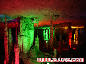 [水晶宮、水晶山]現(xiàn)在所看到的這座小山被稱為“水晶山”,這就是水晶宮的得名由來(lái),科學(xué)名稱稱它為“底流石”,那么它的形成年齡為十五萬(wàn)年,因?yàn)槎错斒且蛔呱剑涞乇硭畢R集成溪沿著洞頂?shù)目p隙滲漏下來(lái),在水沖的過(guò)程中,方解石和次生碳酸鈣的沉淀而形成,那么一下大雨以后,就有水這樣流下來(lái),形成瀑布,我們把這個(gè)地下又稱為“石瀑布群”,大家一定早就注意到這上面金光閃閃的東西了,根據(jù)科學(xué)鑒定這是含某種磷元素的方解石結(jié)晶體?雌饋(lái)閃閃發(fā)光,它的特點(diǎn)就是冬天洞里干燥,它就特別亮,夏天洞里潮濕它就特別暗淡,如有水這樣流下來(lái)時(shí),就看不到了。