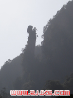 采藥老人是十里畫廊的絕景:一根獨立的石柱,很像一位老人,他彎著腰,頭上衷著一根頭巾,背上背著一個背簍,背簍里裝滿了各種各樣的中藥材。他滿臉皺紋,深邃的目光凝視著前方,神情好像有點優(yōu)慮。如果不是在有意識地觀賞,而是猛地一抬頭望見他,還真以為他就是某個山村里的土家族老人。