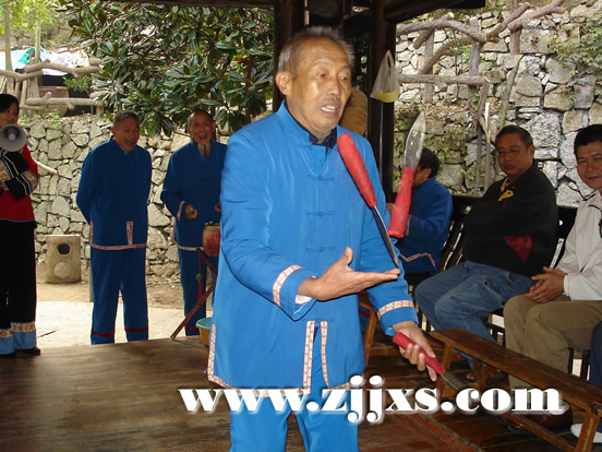 三棒鼓,唐代稱三仗鼓,約于明代傳入本境,并逐漸成為群眾喜聞樂見的民間藝術(shù)形式。每年春節(jié),藝人們結(jié)伴走村串寨拜年,表現(xiàn)對象不分貧富,戶戶必到。如遇貧寒之家,表演者將別家贈(zèng)送的禮品相送,意在人人過節(jié)歡喜。充分體現(xiàn)出土家人熱情好客,心地善良的民族性格。對加強(qiáng)民族間團(tuán)結(jié)有一定的作用。三棒鼓 通常由三至五人組成,一人擊鼓唱詞,一人鑼鼓配樂,一人;ò;ò羧L一尺,舞者左右 各執(zhí)一根,將另一根拋在空中,左右開弓,擊打空中花棒使之不落地。也有以刀代棒,以五刀代三棒的技藝。鋼刀在空中歡跳,銀光閃閃,左右穿梭。技藝高強(qiáng)者,突然把刀拋得及高,來一個(gè)騰空飛腳,轉(zhuǎn)身外擺,繼續(xù)接刀上拋,令人眼花繚亂,不禁稱絕。打三棒鼓,通常有“鬧春耕”、“收割打場”、“慶豐收”、“拜年節(jié)”四套,分“鯉魚跳龍門”、“玉女穿梭”、“板巖漂灘”等項(xiàng)目。打三棒鼓技巧性強(qiáng),表演時(shí)需高度集中,用力適當(dāng),貫通一氣,并與演唱者默契配合。   |