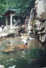 洌甘甜,清澈透明。白鶴泉有“麓山第一芳潤(rùn)"之稱。相傳古時(shí)候曾有一對(duì)仙鶴常飛至此因而取名白鶴泉,有趣的是以泉水煮沸沏茶,蒸騰的熱氣盤旋干杯口,酷似白鶴。曾有寺僧砌石為井如鶴形,刻“白鶴泉"三字于崖上,并建有一石碑。清光緒三年(公元1877年),糧道夏獻(xiàn)云在泉上建亭,抗戰(zhàn)時(shí)被毀,解放后又新建一亭,碧瓦朱欄,頗見(jiàn)風(fēng)雅,F(xiàn)泉側(cè)建有茶室,用清冽的白鶴泉水沏茶,供游客品嘗。