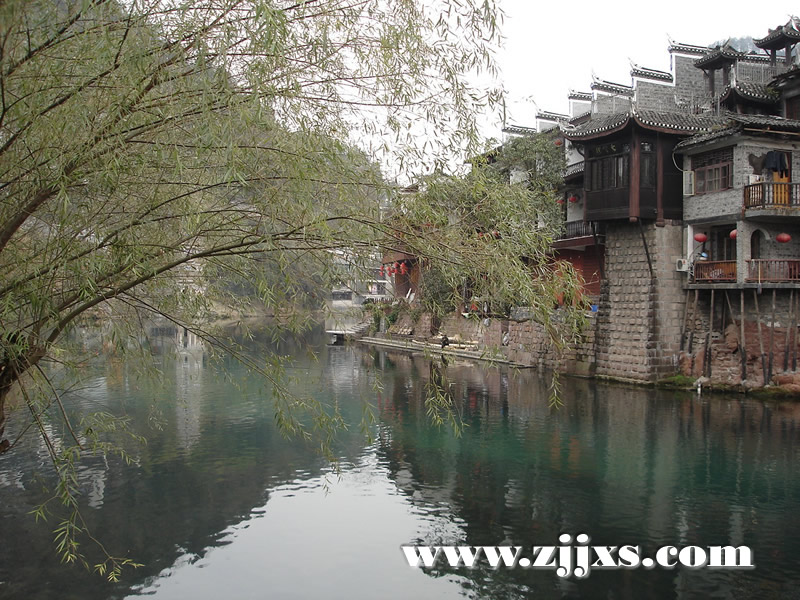 沱江的南岸是古城墻,用紫紅沙石砌成,典雅不失雄偉。城墻有東、北兩座城樓,久經(jīng)滄桑,依然壯觀。沱江河水清澈,城墻邊的河道很淺,水流悠游緩和,可以看到柔波里招搖的水草,可以撐一支長篙漫溯。沿沱江邊而建的吊腳樓群在東門虹橋和北門跳巖附近,細(xì)腳伶仃的立在沱江里,象一幅永不回來的風(fēng)景。