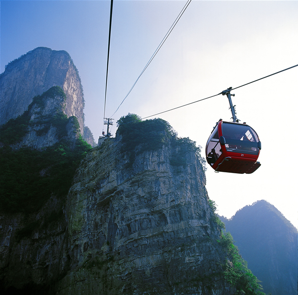 那是一個陽光親到臉上很溫暖的下午,我們一行4人上了全長7455米的天門山索道.坐進四周都是透明的玻璃轎廂里,我們就像飄在空中的一片碩大的樹葉,先是飄過丘陵和天疇,接著又傾斜著飄進漸漸茂密的森林上空.慢慢地飄啊飄.比飛機慢,比人行快,一種在空中飄得十分愜意的速度,讓我們越過了一片開滿白花的野櫻桃林,又飄至鳥跡罕見的懸崖上,那猛然聳立的粗大鋼鐵索道支架,讓我們對巧奪天工的人的偉力驚嘆不已!腳下的森林越來越茂密,峽谷也越來越幽深,我們斜著越飄越高,慢慢地從懸崖絕壁上穿行.有時候,我們猶如凌空的飛狐,從遺一片樹林跳到另一片樹林,從一座山尖飄向另一座山尖.一種驚訝萬分,欣喜萬分,痛快萬分的感覺在萬丈深淵的空谷里飄著.山尖從身邊過去,懸崖從身邊過去,森林從身邊過去,那種凌空慢慢飄著的味道,那種凌空慢慢飛翔的味道,那種在高空散步的味道,刺激著我們,讓我們?nèi)淼拿恳粋毛孔都為之張開,我們不由自主的喔嗬呀呀地尖叫著,興奮莫名.有時候,只稍微朝下望一眼,就看到那森林綠成了一團,森林之上是空空蕩蕩的大峽谷,誰能想象出我們就在這空空蕩蕩之中,小得像一粒瀏陽豆鼓似的,一會兒向上一會兒向下又再向下慢慢飄去的情景呢?離山頂越來越近,我們卻越懸越高,懷揣著忐忑的心跳,身上冒著麻麻汗,我們依然在矯廂里由著鋼索上升,跨越一座高一座的山尖,橫過一個又一個的懸崖絕壁,我們平平穩(wěn)穩(wěn)地到達了神秘的山頂.我們在空中花園的石板小路上行走,看到這里石芽廣布,青苔覆蓋著的石林、野藤纏繞著的雜木,心想誰都不認識的神仙大概就是我們現(xiàn)在這副樣子吧.果然,眼前就飄來仙女一樣的導(dǎo)游小姐,她叫全麗,身著一襲白色的運動裝,領(lǐng)著我們在覓仙奇境的石板路上像松鼠似的蹦來蹦去“那里是李娜的小屋!”全麗嫩白的圓臉上洋溢著紅暈,指著一間小木屋告訴我們。李娜是不是唱著《嫂子》從后山爬到這山頂上的,原打算長年居住于此,后來卻削發(fā)出家。我情不自禁地尖叫起來:“呀…..啦……索…..哎…..嗨….”我是已經(jīng)領(lǐng)略了世界上最長索道給人帶來的刺激和驚喜,感覺自己已經(jīng)多了一份在人前炫耀的本錢和自豪,才發(fā)出一連串撒野的尖叫的。