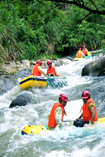 具有湘東綠色明珠之稱的大圍山國(guó)家森林公園,這已經(jīng)是眾所周知的,自一九九七年建園以來(lái)的六年間,大圍山國(guó)家森林公園以她那優(yōu)美的環(huán)境,美麗的風(fēng)光,周全的服務(wù)吸引了幾百萬(wàn)游客前來(lái)旅游觀光,休閑度假,得到了游客的普遍贊賞。但是,在游客的心目中還總覺(jué)得缺少了點(diǎn)什么,那就是缺少了能讓廣大游客普遍參與的開(kāi)心刺激的好玩項(xiàng)目,為了滿足廣大旅游愛(ài)好者的愿望,瀏陽(yáng)市金浪旅游開(kāi)發(fā)有限公司對(duì)瀏陽(yáng)河源頭—大圍山峽谷進(jìn)行了成功的開(kāi)發(fā),形成了以大圍山峽谷漂流為主體的系列旅游項(xiàng)目,現(xiàn)在去大圍山玩,你根本不用擔(dān)心沒(méi)有好玩的地方,大圍山峽谷漂流,能讓你玩?zhèn)痛快,玩得開(kāi)心,玩得你筋疲力盡,讓你驚心動(dòng)魄,樂(lè)得你長(zhǎng)時(shí)間合不攏嘴,怪不得有人說(shuō),現(xiàn)在去大圍山玩,如果不去漂流,那是一件很遺憾的事,等于白跑一趟;還有人深情地總結(jié)了大圍山在長(zhǎng)沙地區(qū)的五個(gè)“最”,那就是最高大的山脈、最原始的森林、最密集的瀑布、最清新的空氣、最好玩的地方。