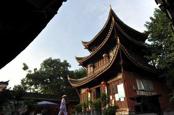 文廟對岸便是觀音閣,碧水連天,佛殿前青煙裊裊,禪房門外,芊芊細草,夕陽西下催人忘返。我心中有一心愿,待到晚年,在古乾州城內(nèi)租一板房,端一杯清茶,巨頭紅日看飛鳥,靜坐山亭聽暮禪。
